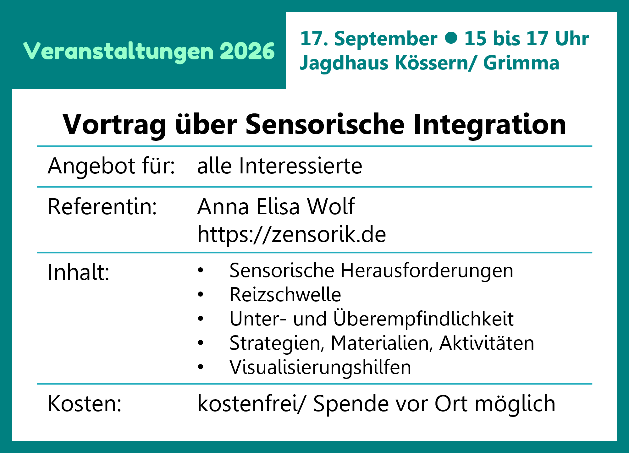 - Zielgruppe: Eltern, Betroffene, Fachpersonen aus Schule/Kita/ Therapie