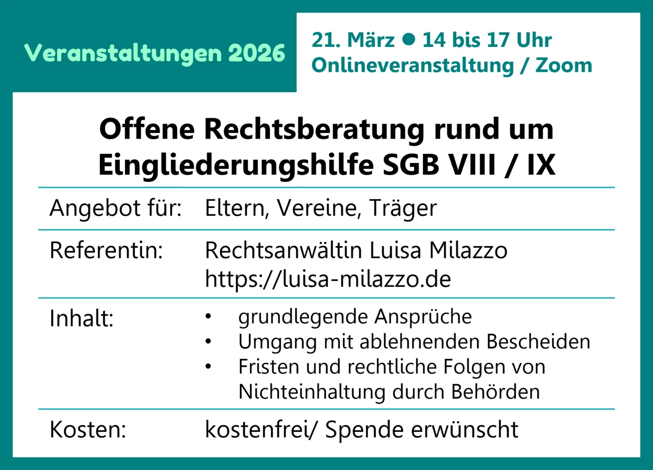 - Zielgruppe: Eltern, im Bereich Inklusion tätige Vereine