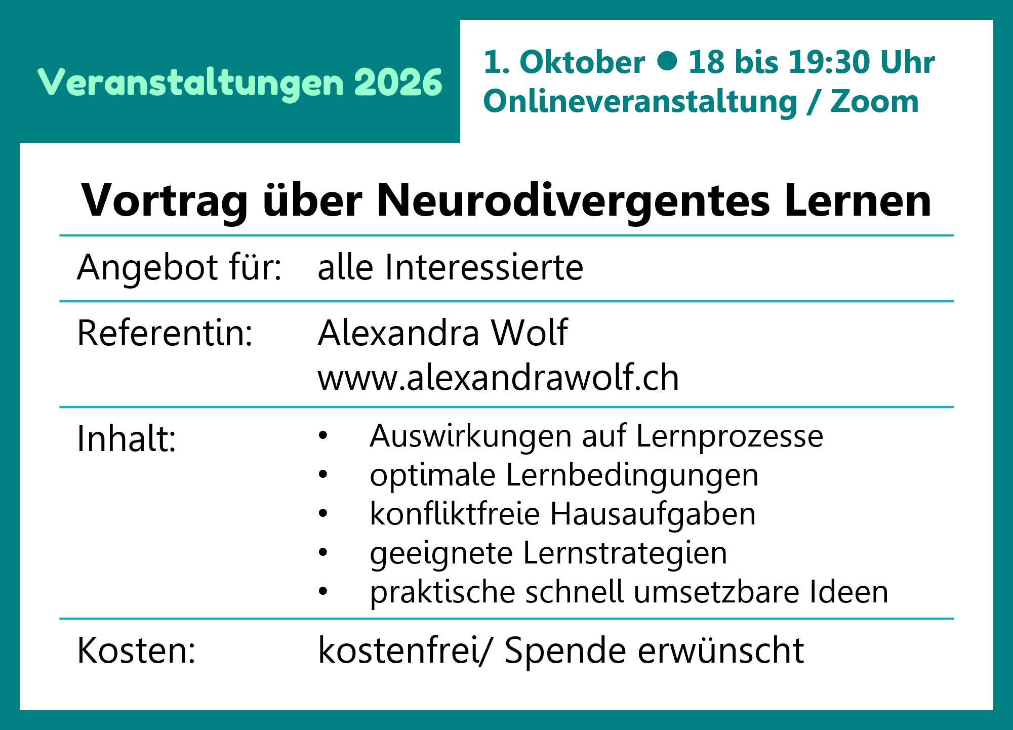 - Termin: 01.10.2026 - 18:00-19:30 Uhr